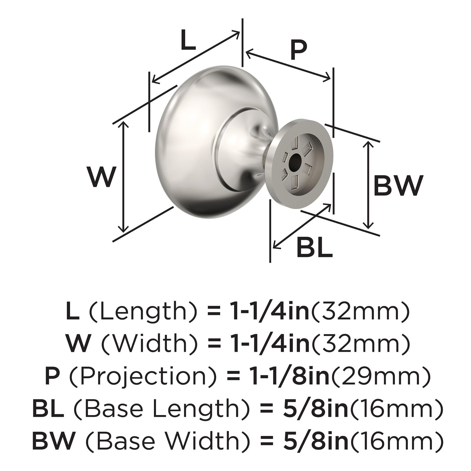 Amerock BP53005PN Edona 1-1/4" Dia Polished Nickel Cabinet Knob