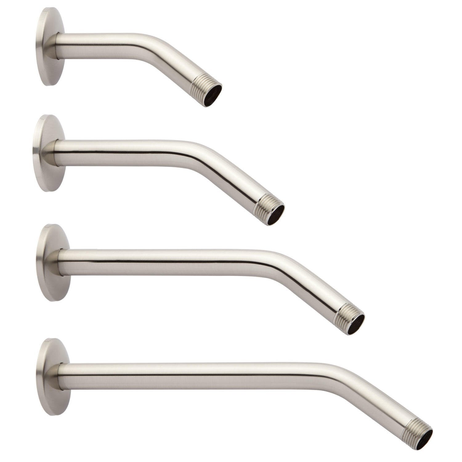 Made of heavy duty solid brass, this shower arm includes a matching flange and will fit all standard shower heads. Signature Hardware 909606-8 Features: Constructed of brass ensuring durability and dependability 1/2" IPS connections are female to source and male to shower head Includes matching flange Shower Arm Length: 8"